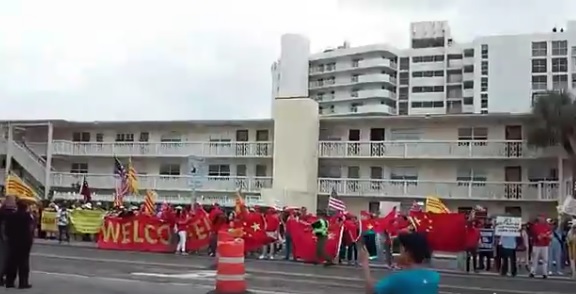 Tôi có mặt ở đó. Tụi Tàu khoảng 34 người còn VN khoảng 500. Rất tiếc là địa điểm biểu tình khá nhỏ và cảnh sát Mỹ không chia cắt hai phía y như kẻ biểu tình chống Trump và kẻ ủng hộ Trump. Người Việt tránh xô xát tuy hai bên rất căng thẳng. Tụi Tàu đem thêm 3 xe bus khoảng 200 nhưng cảnh sát Mỹ không cho họ vào địa điểm biểu tình hay ngựời Việt dùng hàng rào người ngăn không cho họ vào nên số đó phải ra về. Riêng toán 34 người Tàu cuối cùng phải rời địa điểm trước khi đoàn xe của TT Trump đi qua vì có lẽ họ quá cô đơn đối với người Việt hô "out Xi Zinping" áp đảo. Còn họ Tập đến khoảng 5 giờ mà lúc đó theo chương trình thì chúng tôi đã phải ra về chỉ còn toán xuống từ Atlanta. Dĩ nhiên địa điểm biểu tình không còn ai ngoài toán Atlanta. Chúc vui khỏe.